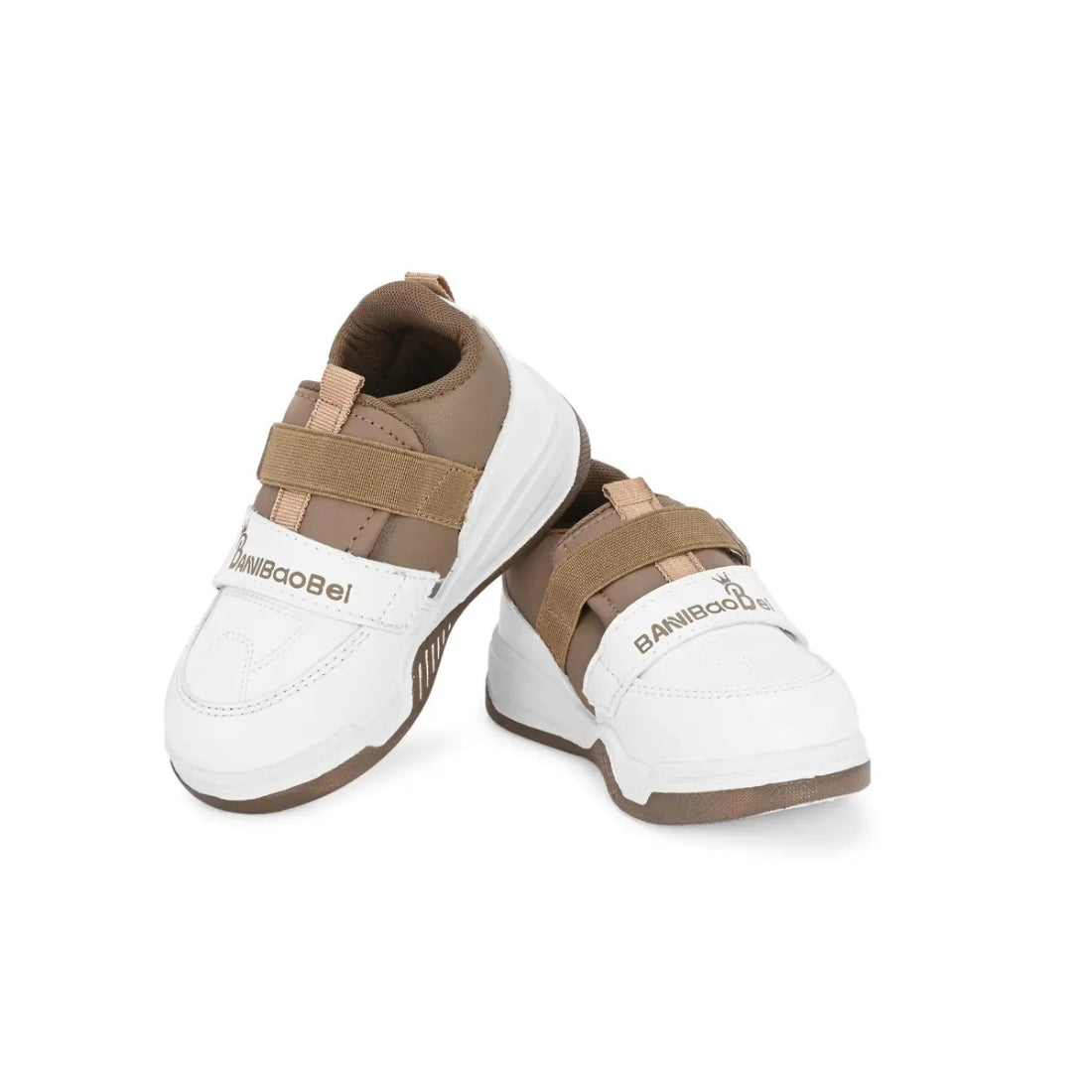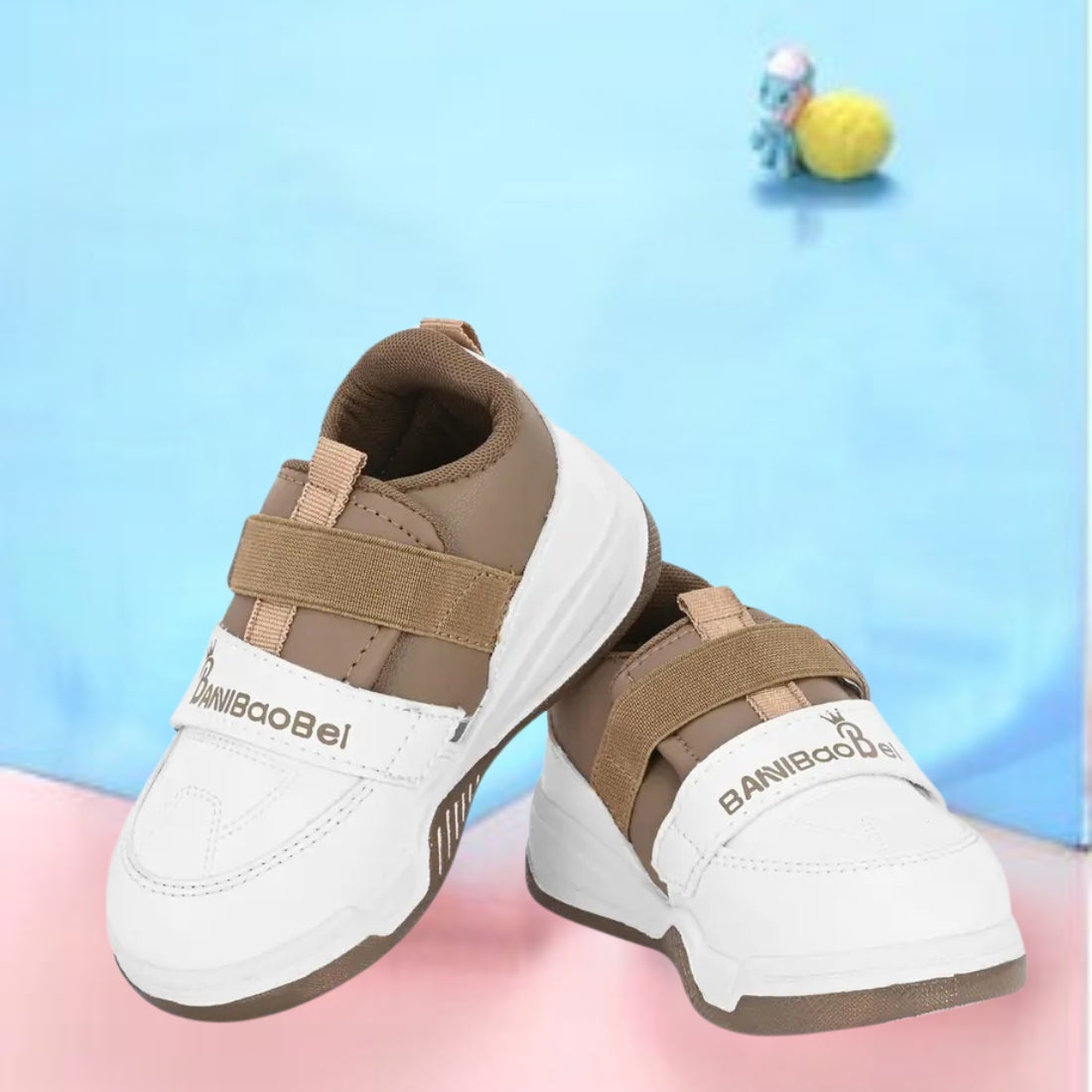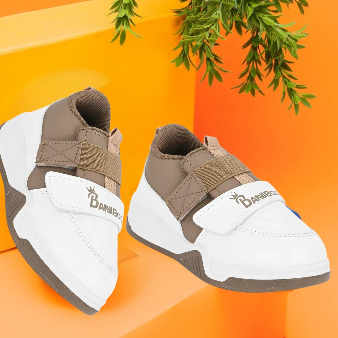 Kids Stylish Trending Sneakers - White & Brown (Unisex)